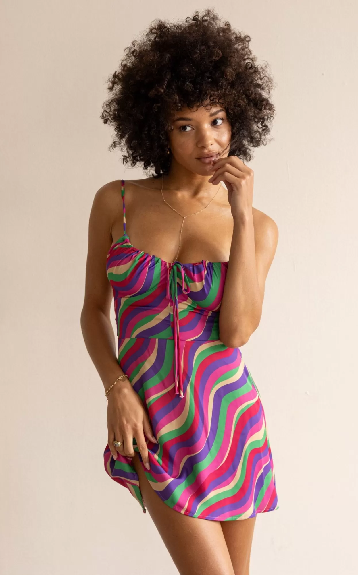 - Model Measurements: Height: 5’8″, Bust: 32B, Waist: 25″, Hips: 35″