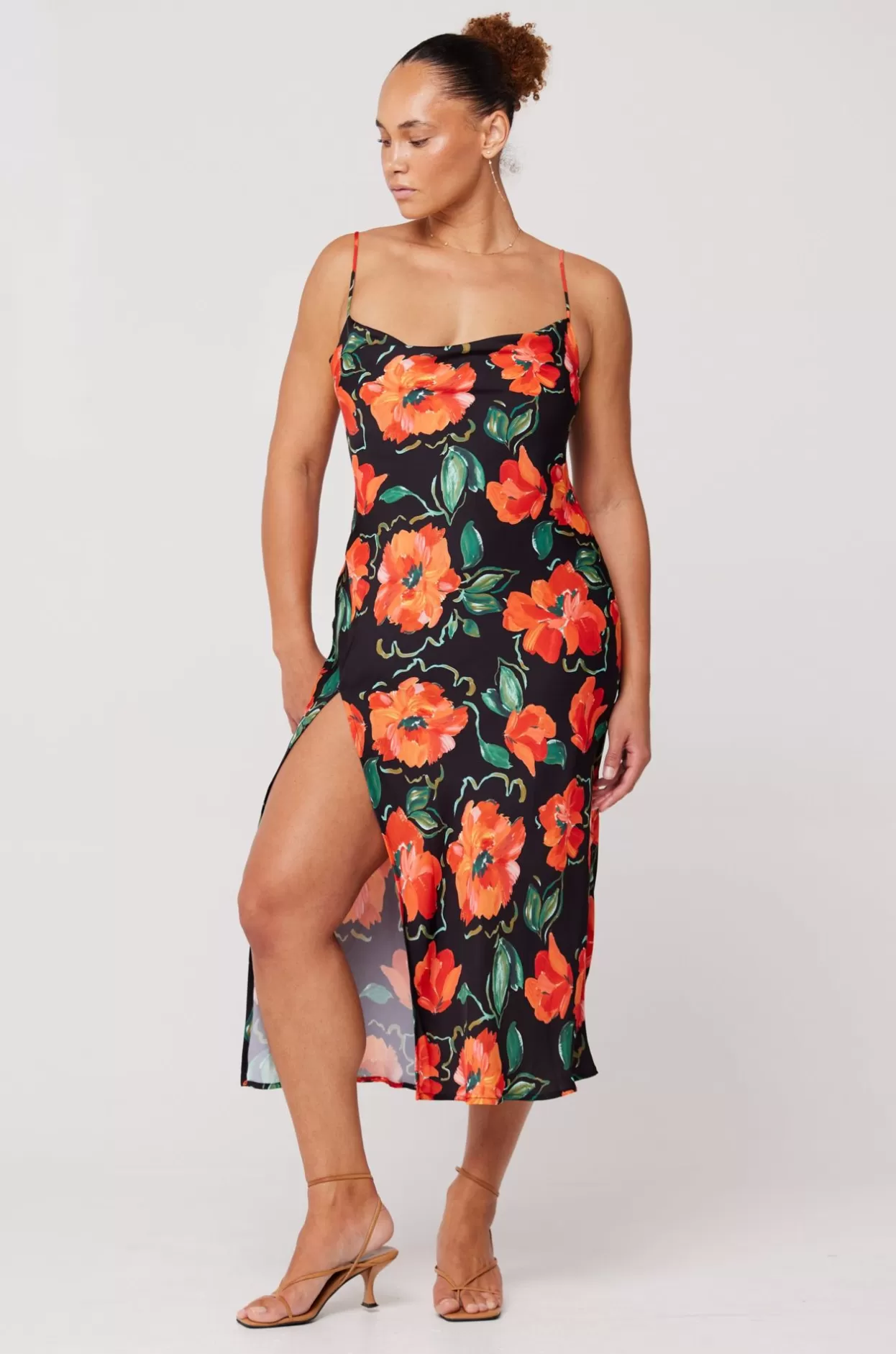 Open Back With Adjustable Spaghetti Tie StrapsCowl Neckline With High-Leg SlitFabric: 100% Polyester Machine Wash Cold O…