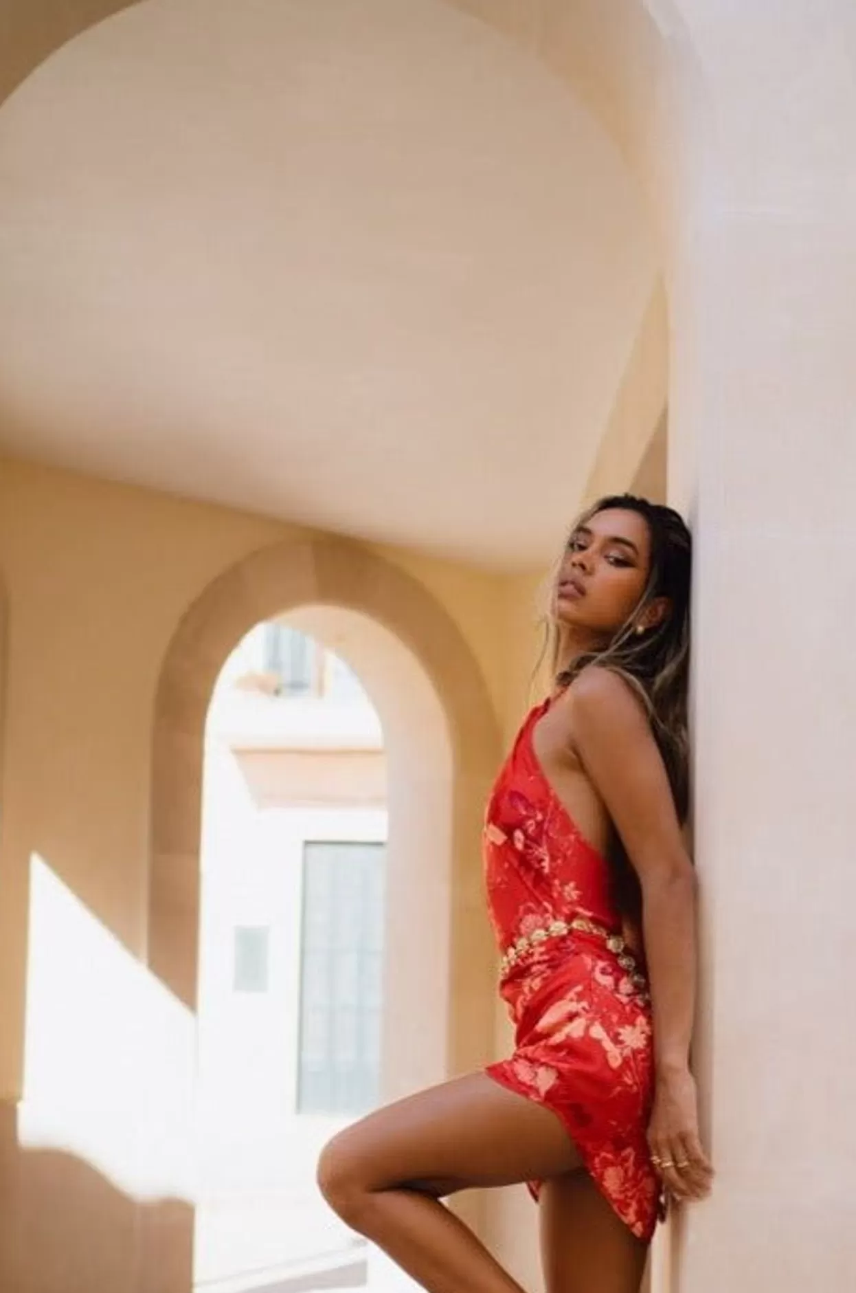 Adjustable Halter Neck Mini Length Bias With Side Diagonal PleatsFabric: Super Silky Deluxe PolyMachine Wash Cold On Del…