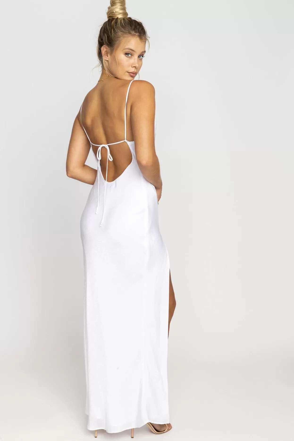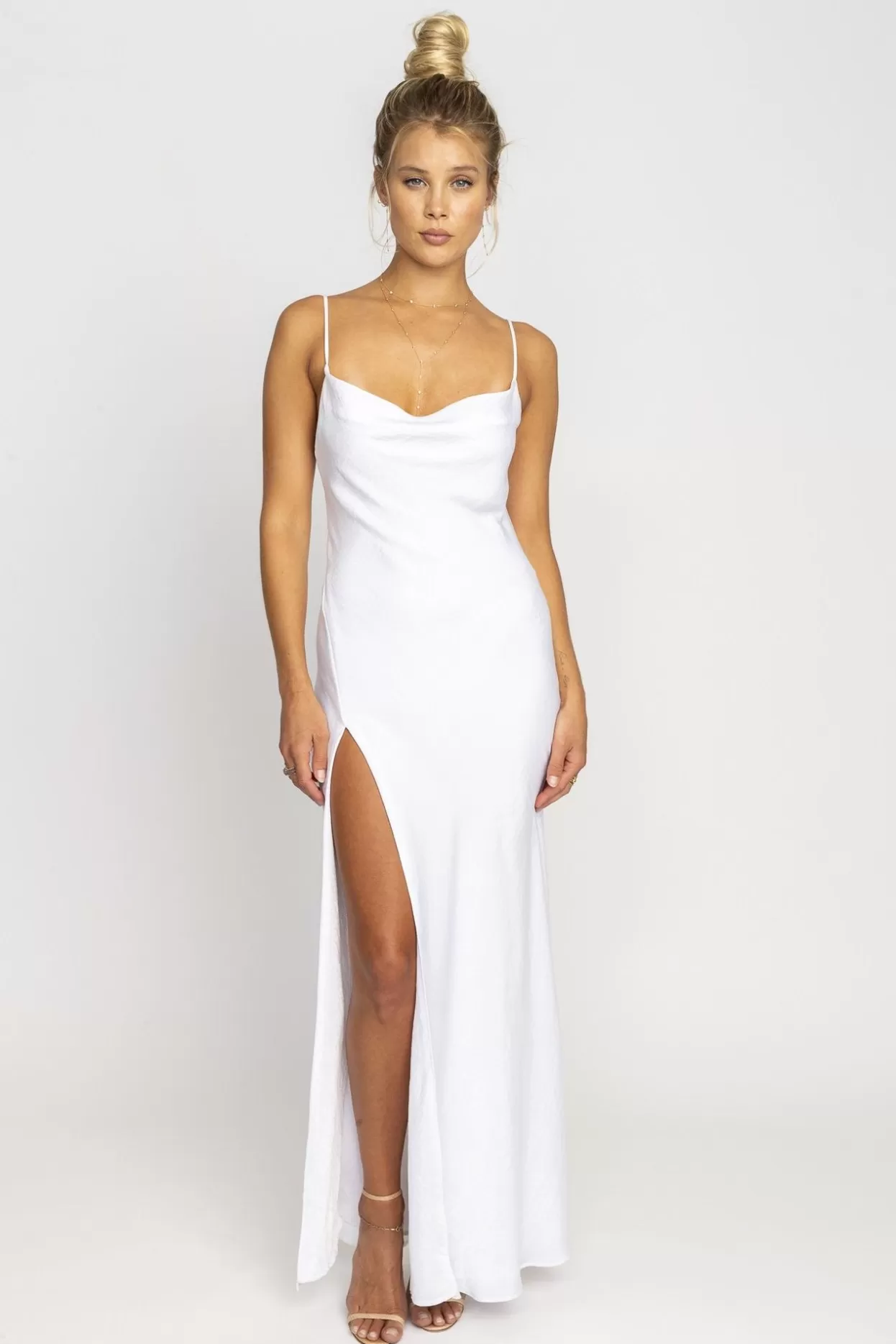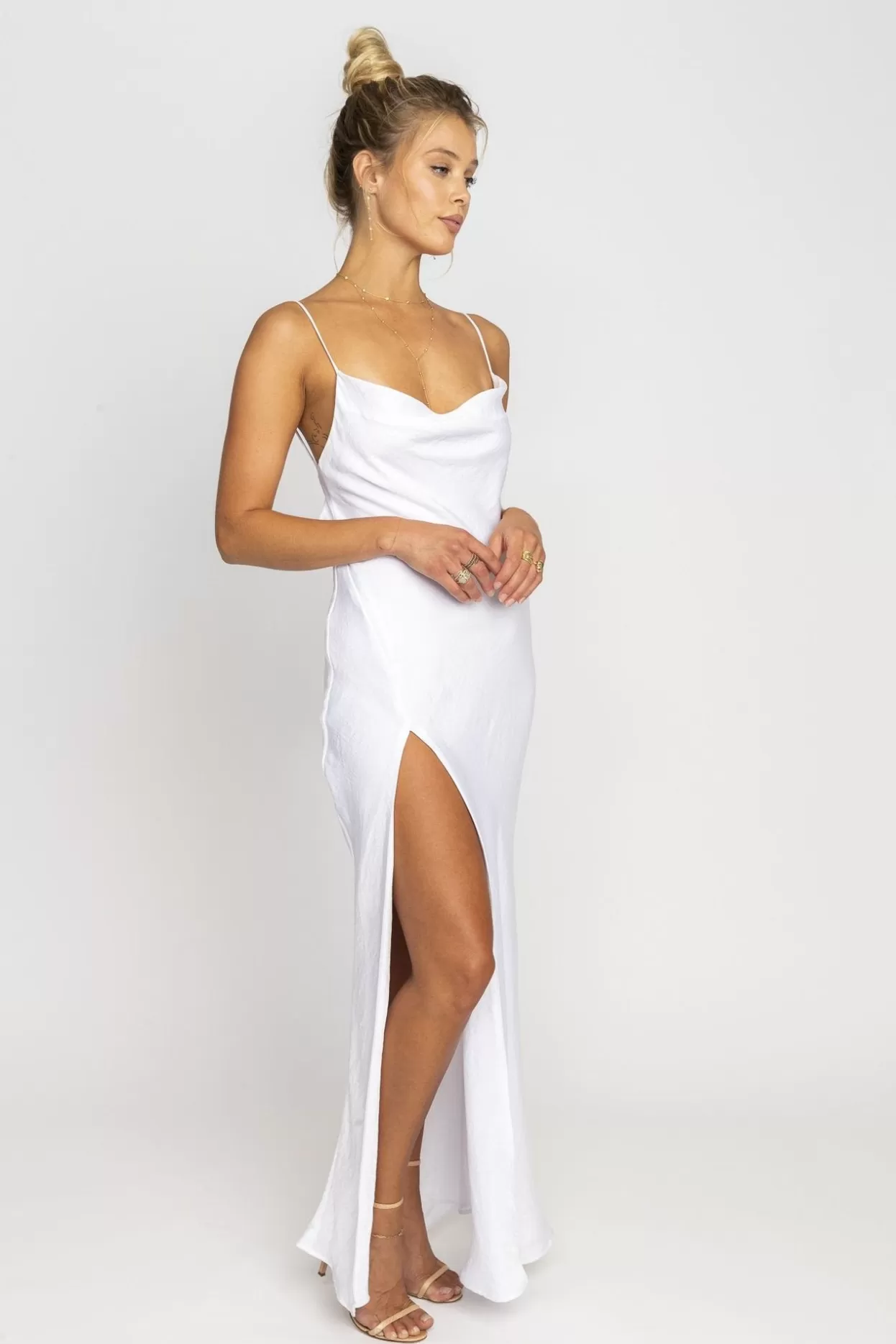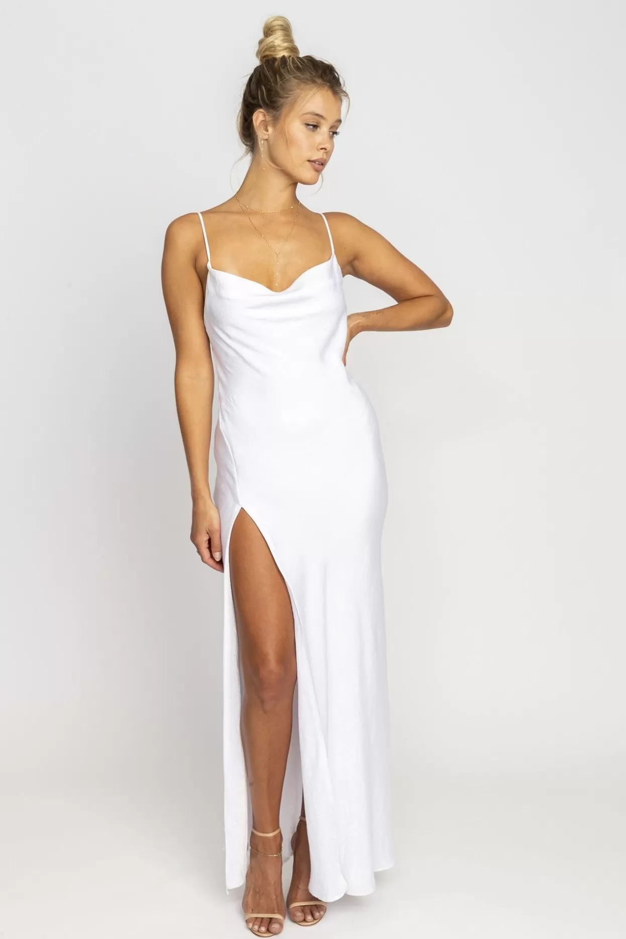 Cowl Neckline With Adjustable Tie StrapsOpen Back Feature With High Leg Slit100% PolyesterFully Lined With SelfMachine W…