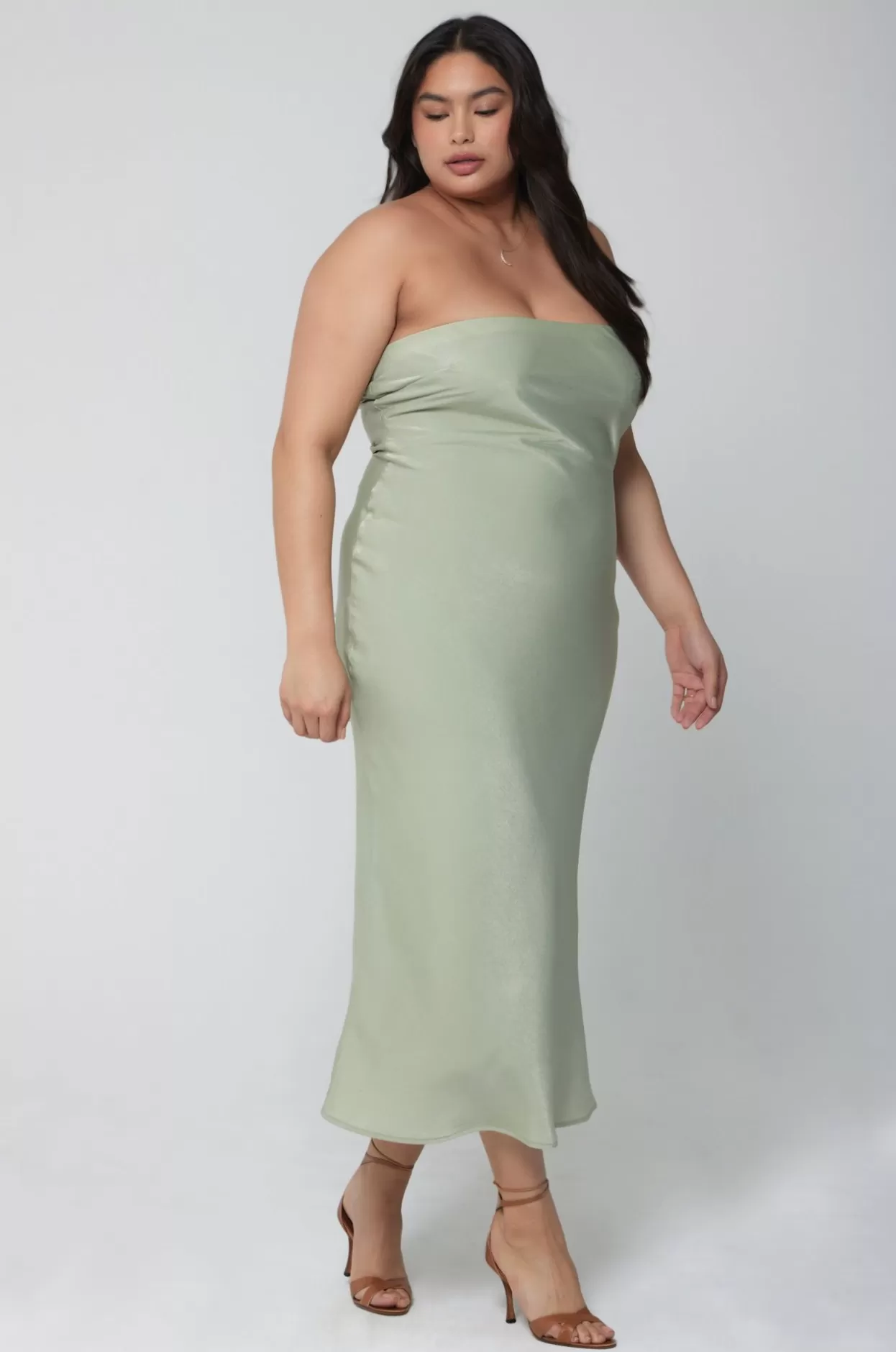 Strapless Bias Slip DressMidi LengthFabric: 100% Polyester, Fully LinedMachine Wash Cold Inside Out On Delicate Cycle &A…