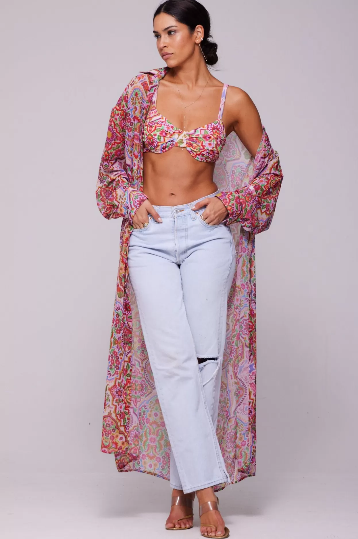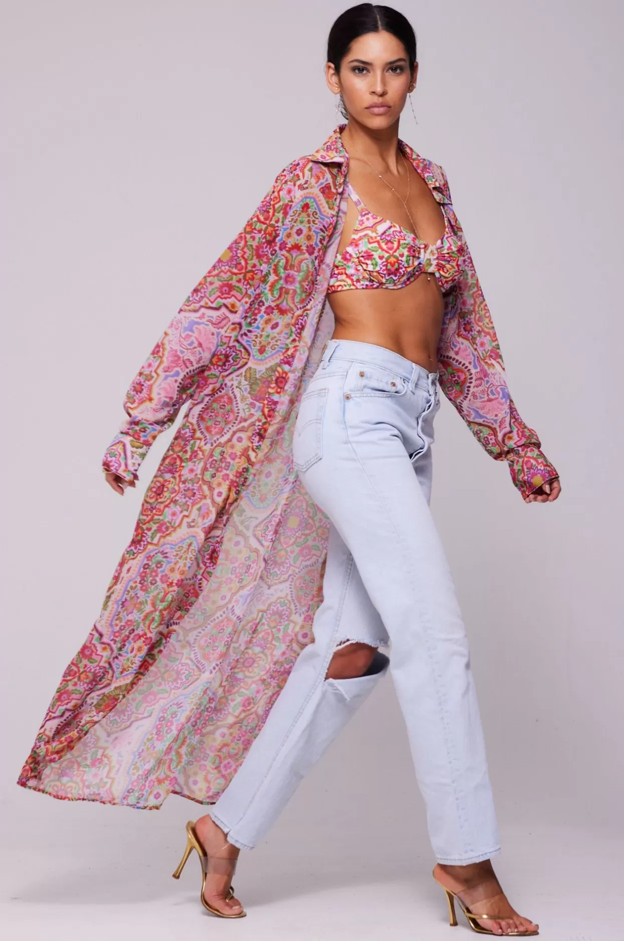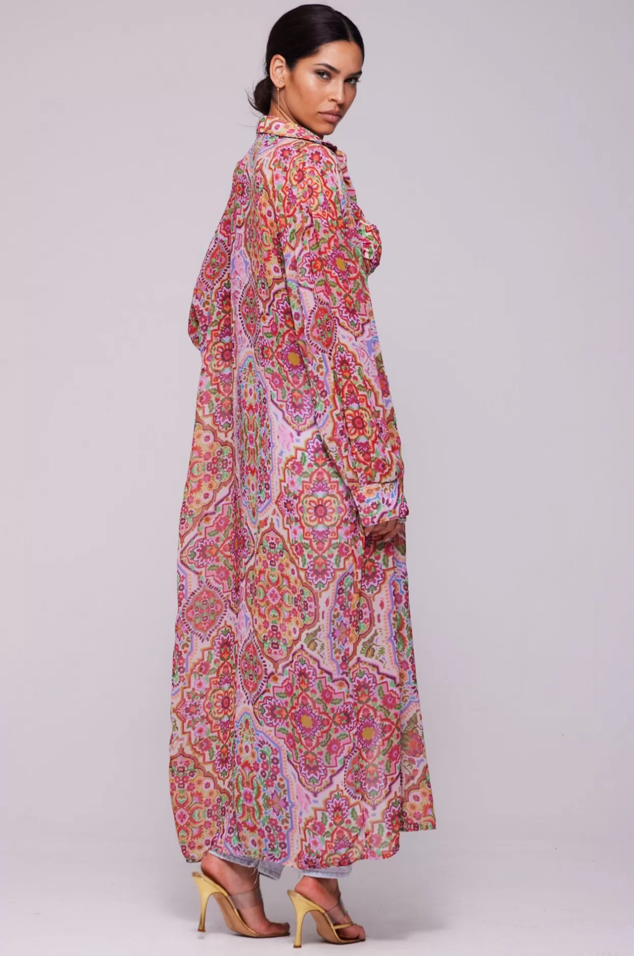 Maxi Length Collared Button Down BlouseSemi Sheer FabricOversized Duster Style FitMachine Wash Cold On Delicate Cycle &A…
