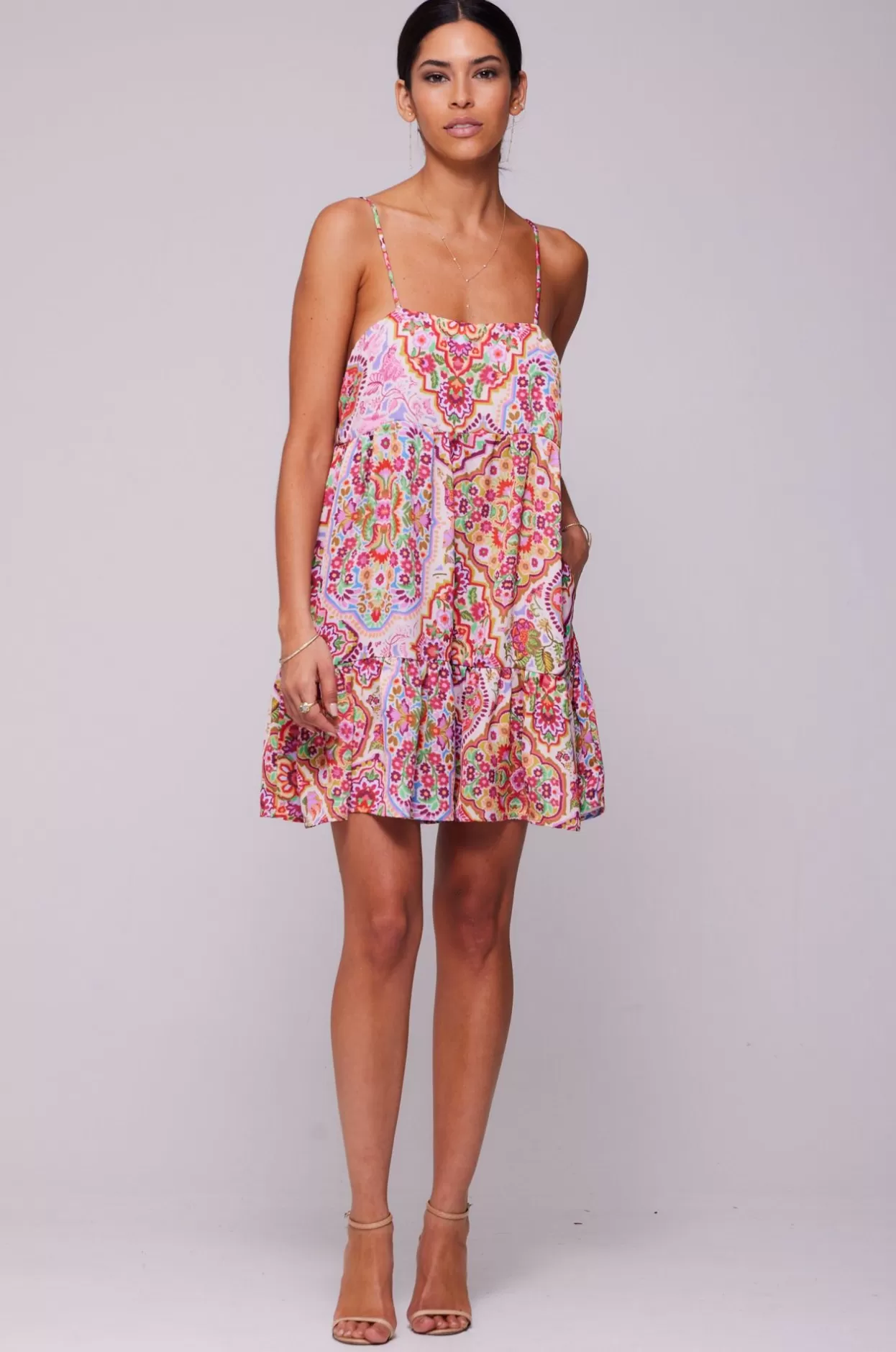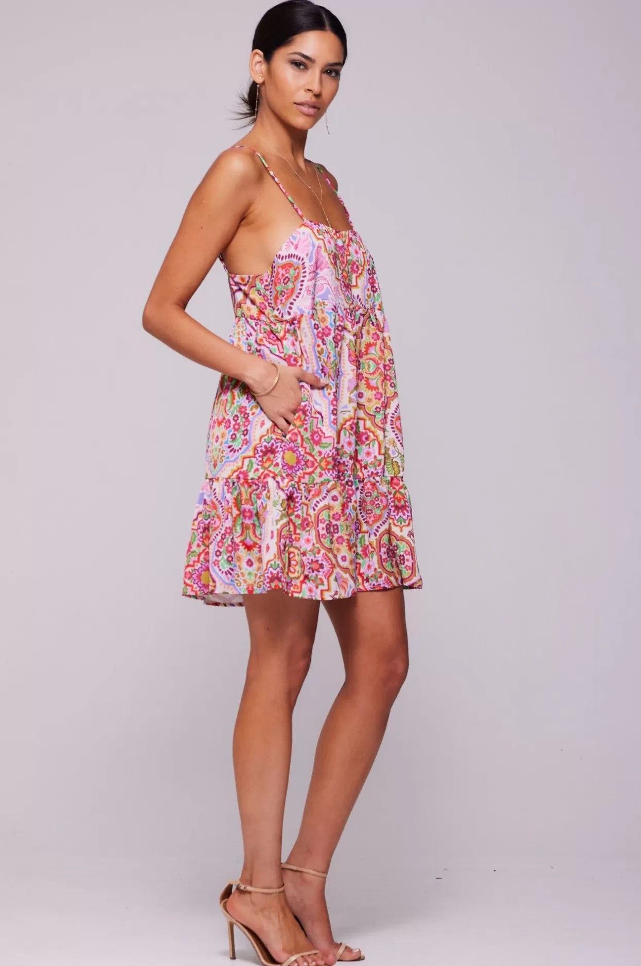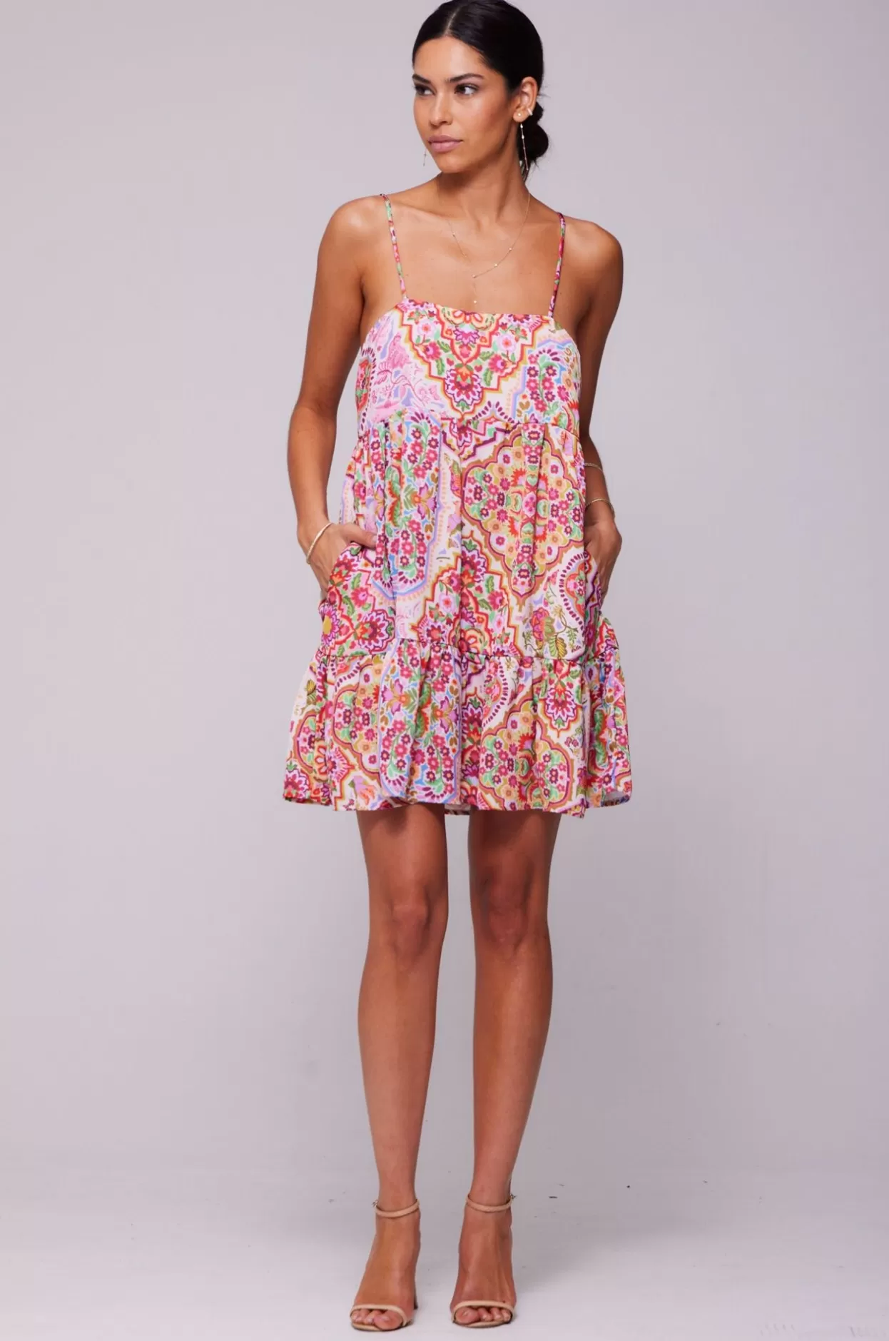 Square Neckline With Adjustable Spaghetti StrapsSide Zipper ClosureLoose Fit Mini Style With PocketsFabric: 100% Polyest…