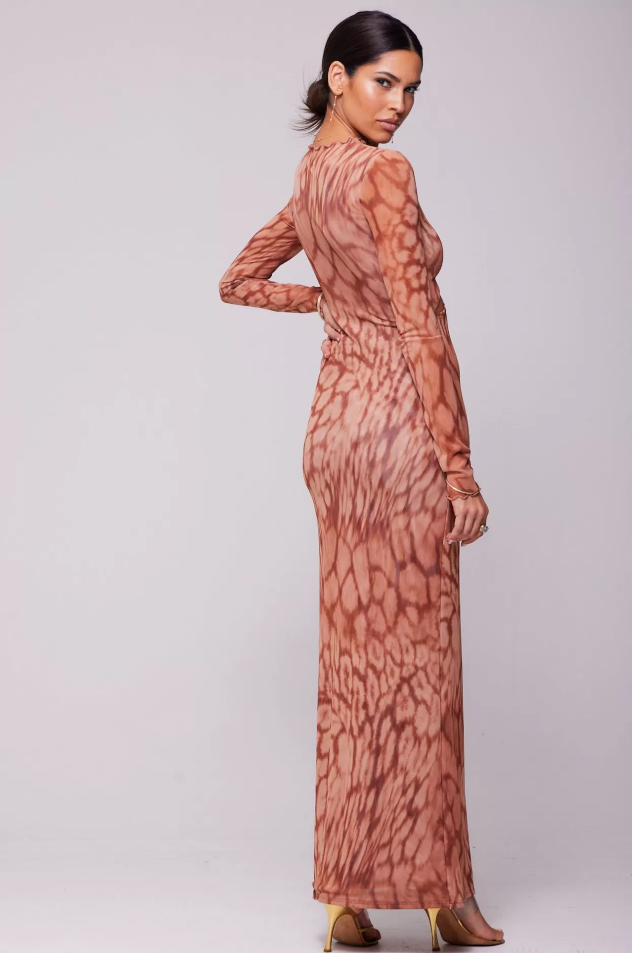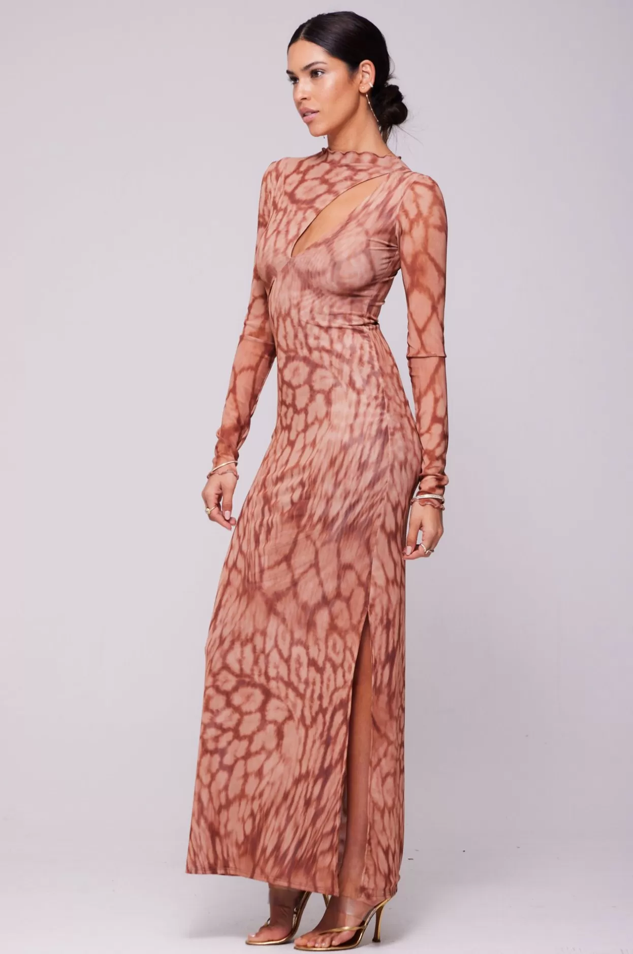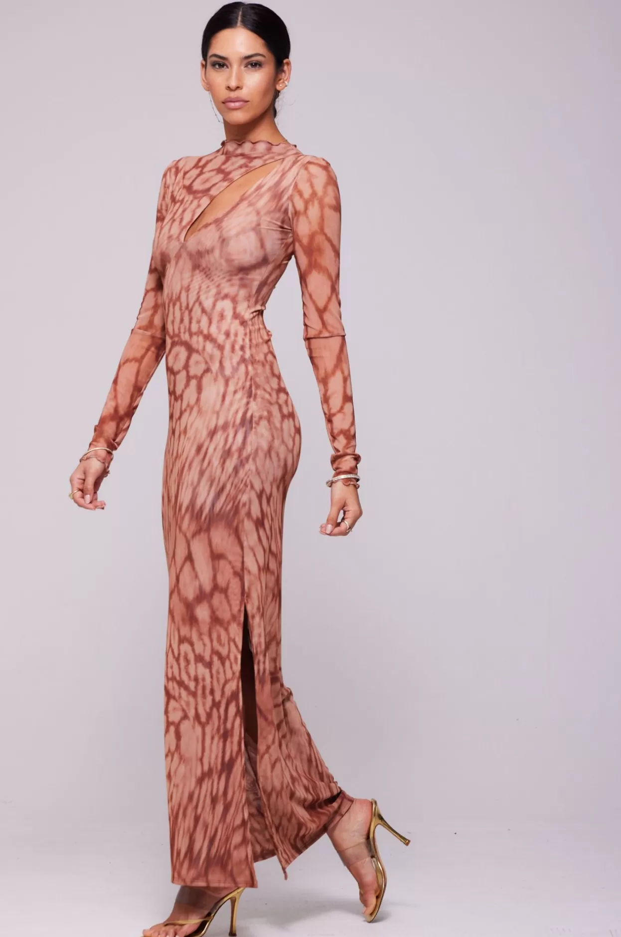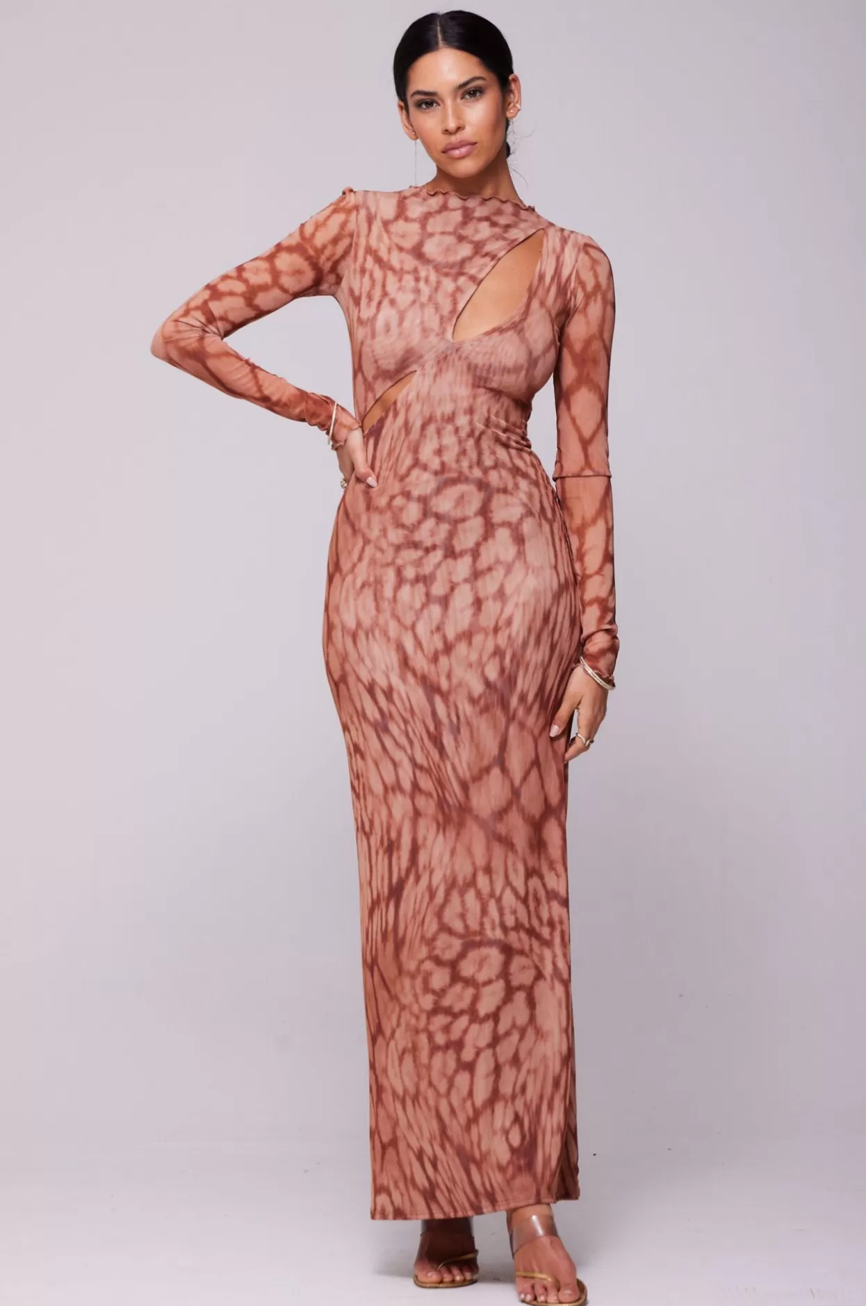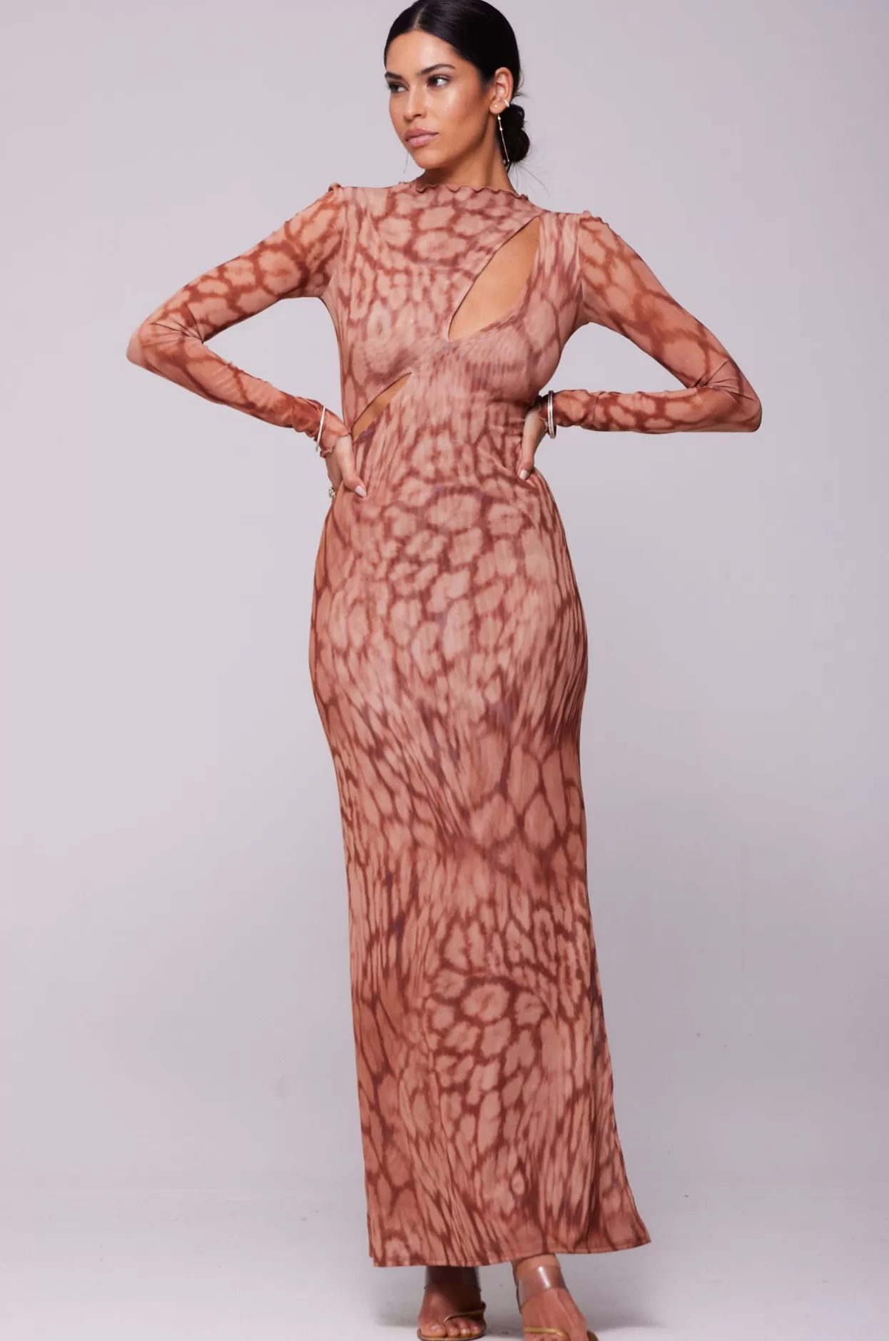 - Long Sleeve Maxi Dress With Two Cutouts On Upper Body