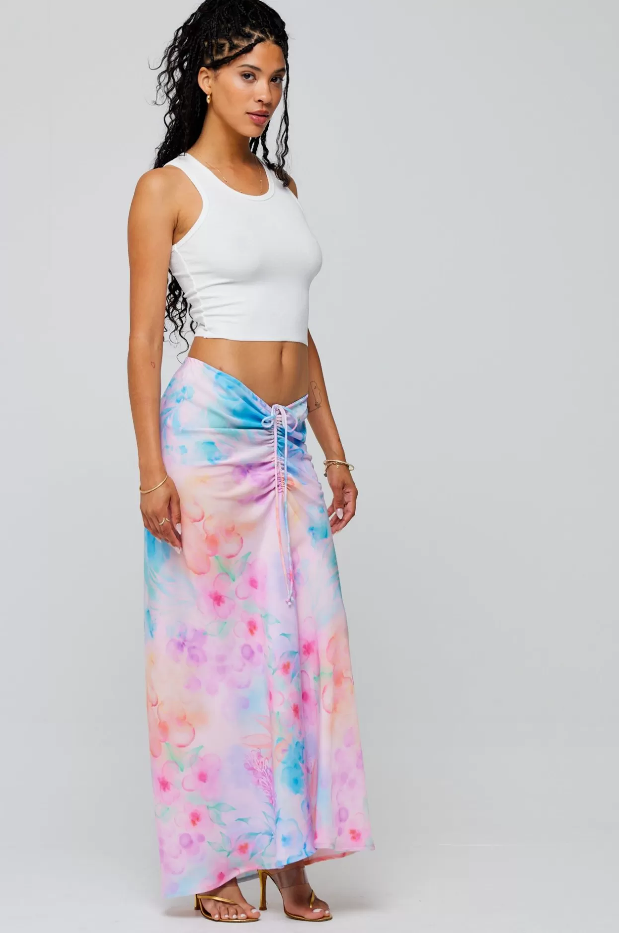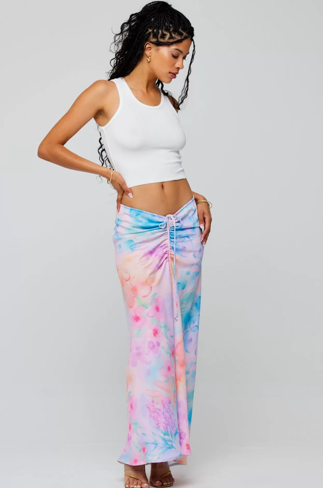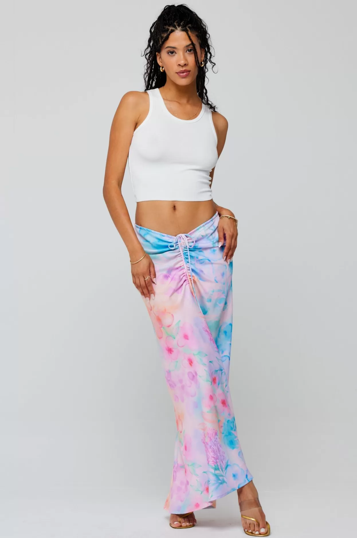 Elastic Stretch Waist With Front Tie Shirring Wear Shirred Up V Shape Or Maxi Length StyleZipper Up Back ClosureFabric: …