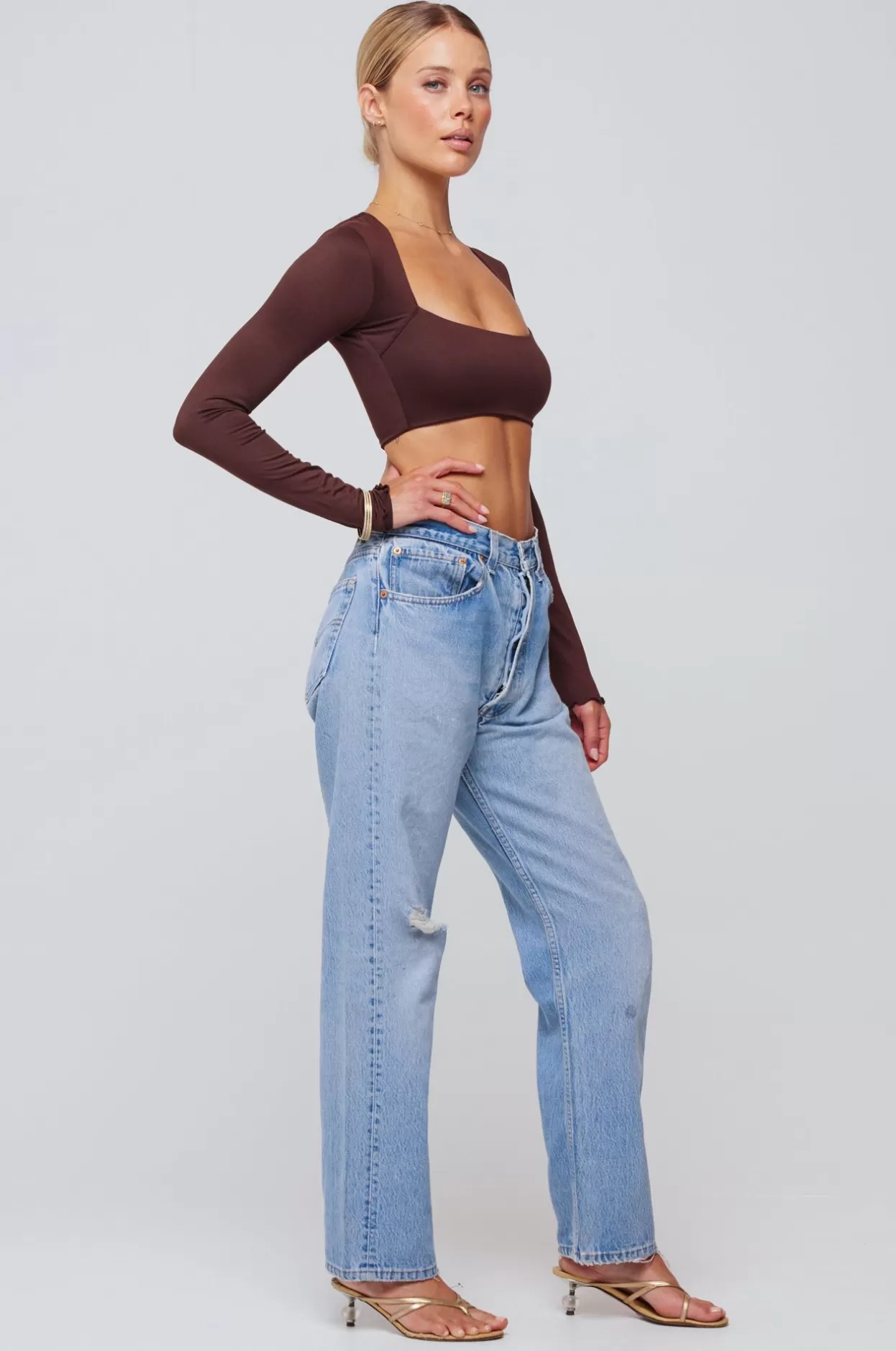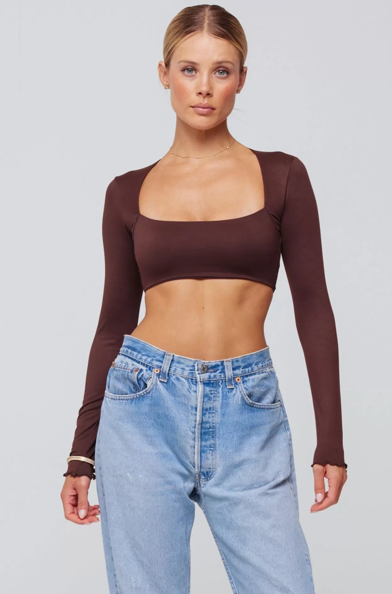 Double Lined Seamless KnitSquare Neckline Lettuce Sleeve Hem With Crop LengthFabric: 96% Poly, 4% SpandexMachine Wash, A…