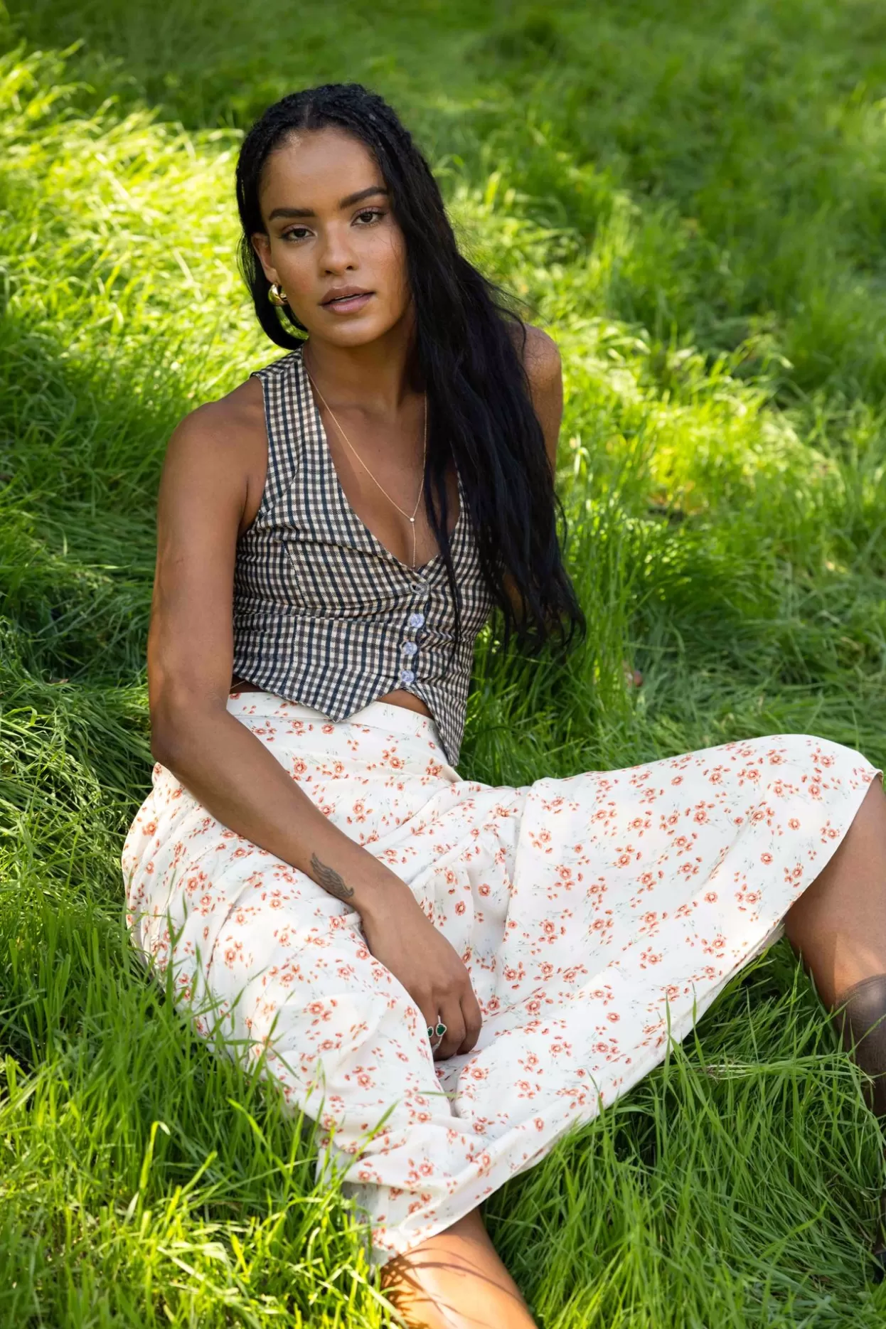 - Model Measurements: Height: 5’7. Bust: 32B, Waist: 25/26″, Hips: 34″
