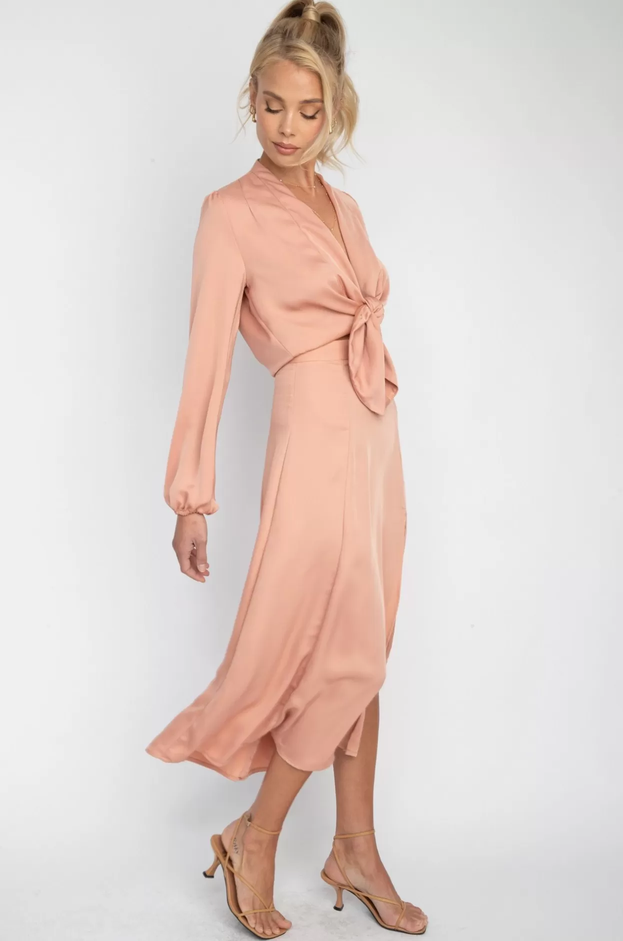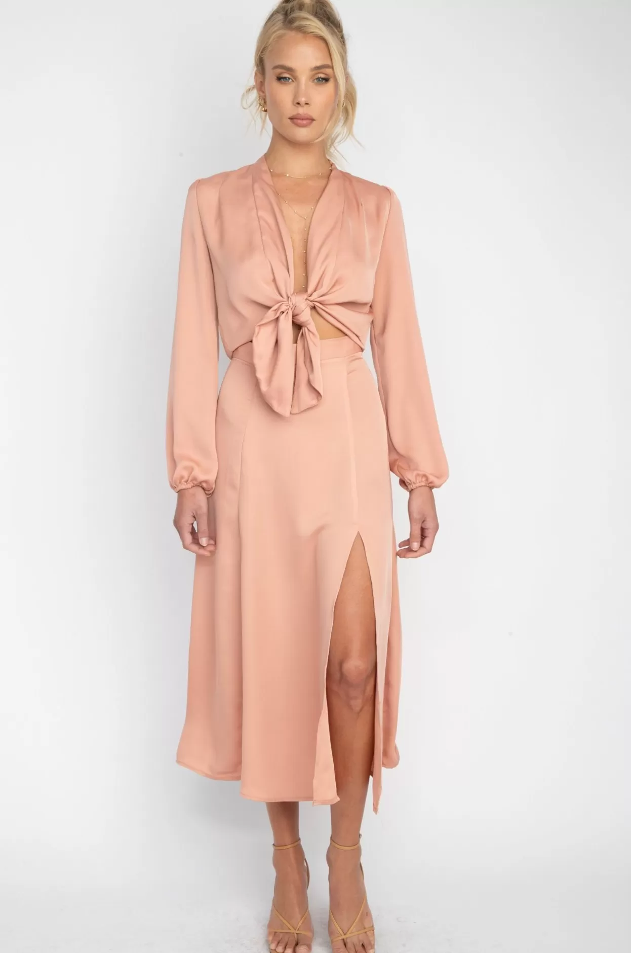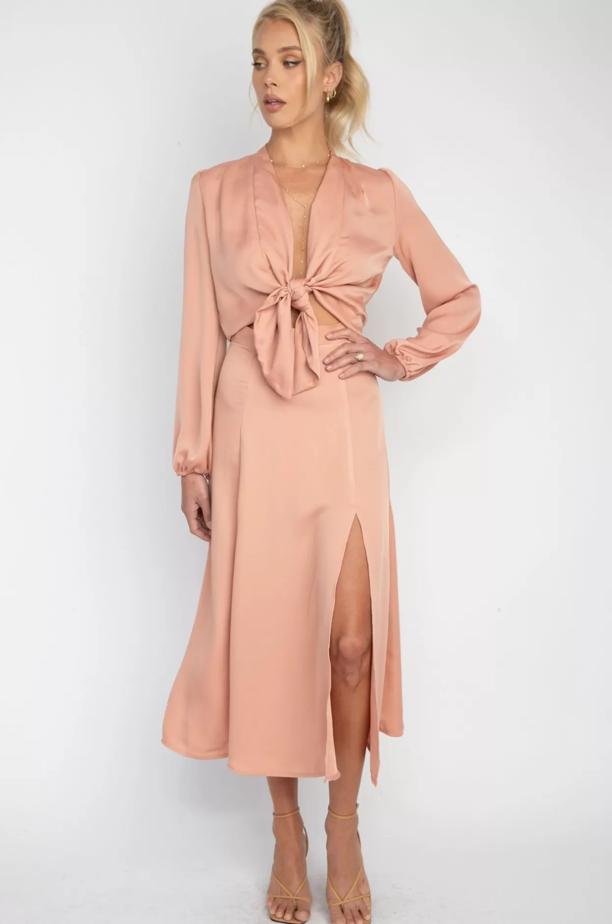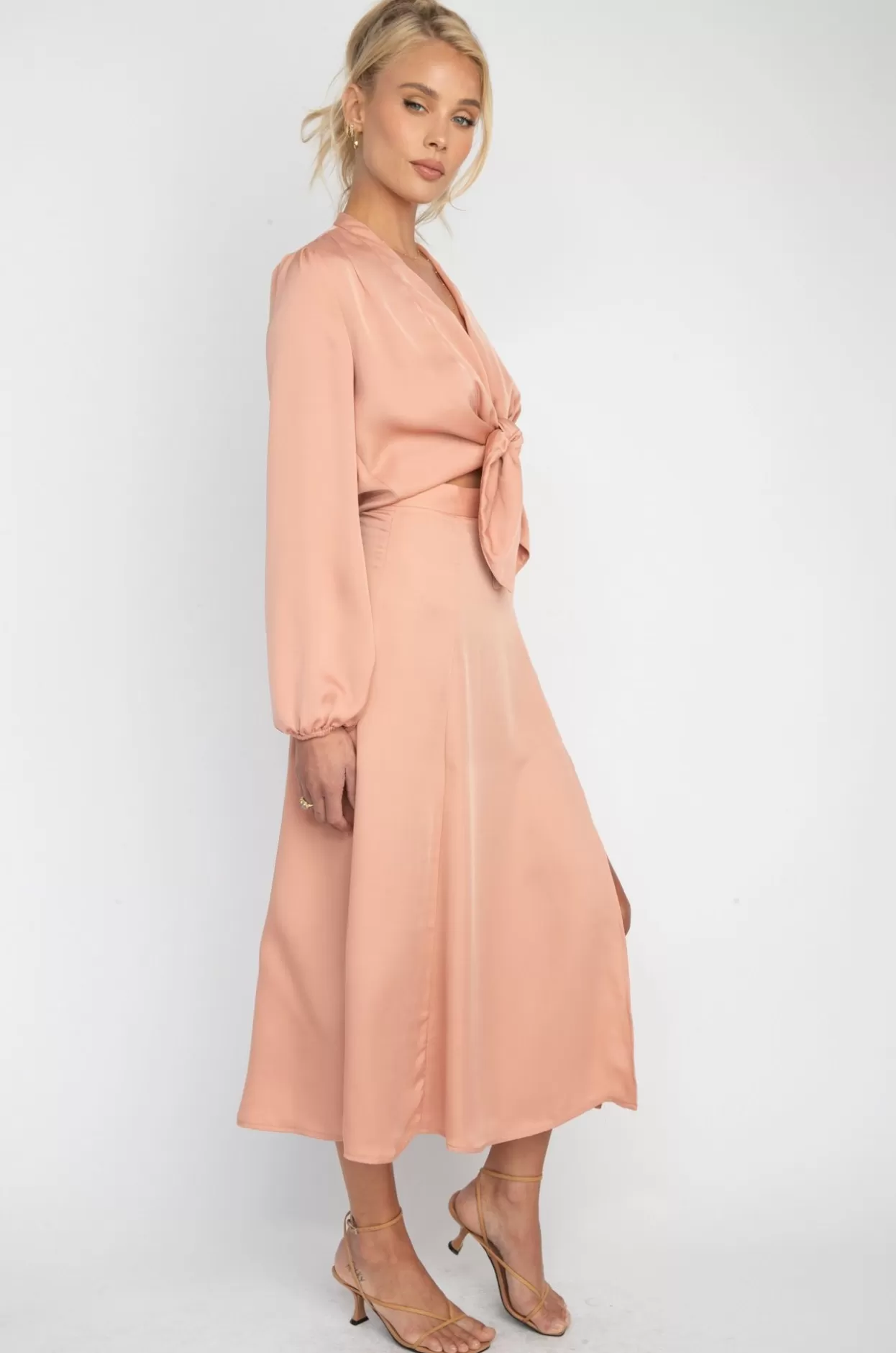 - Midi Length Skirt With High Leg Slit