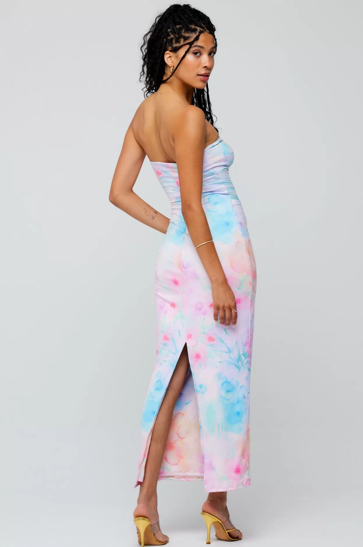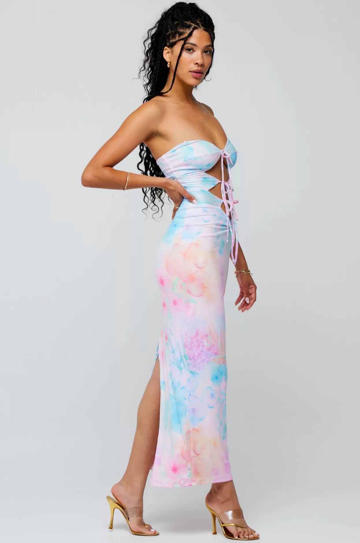 - Model Measurements: Height: 5’8, Bust: 32B, Waist: 25″, Hips: 35″