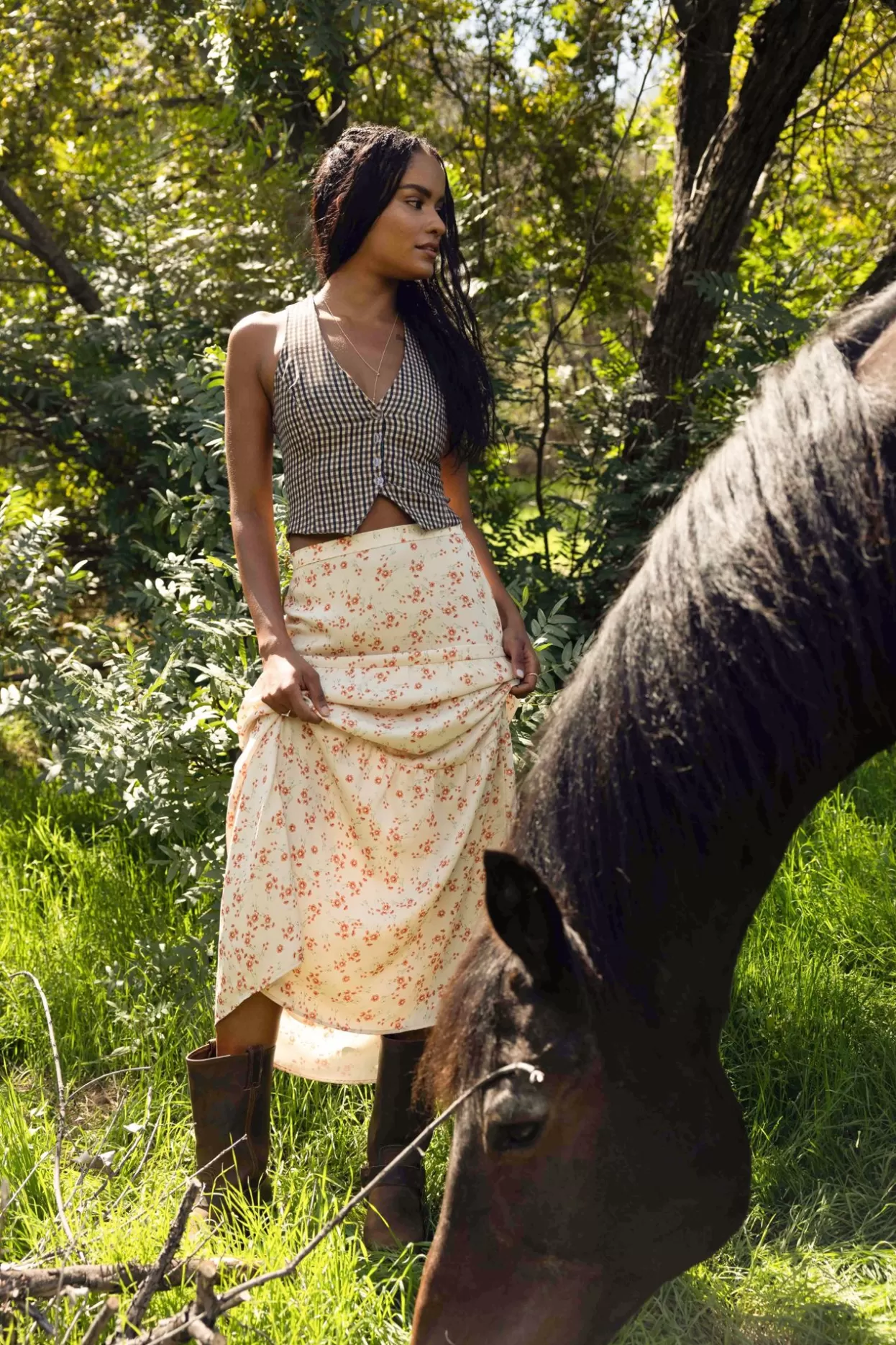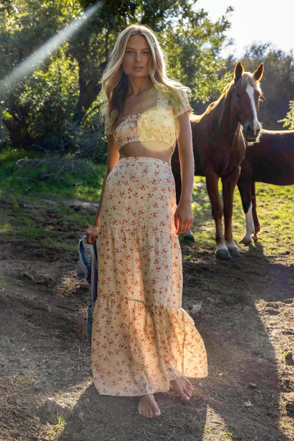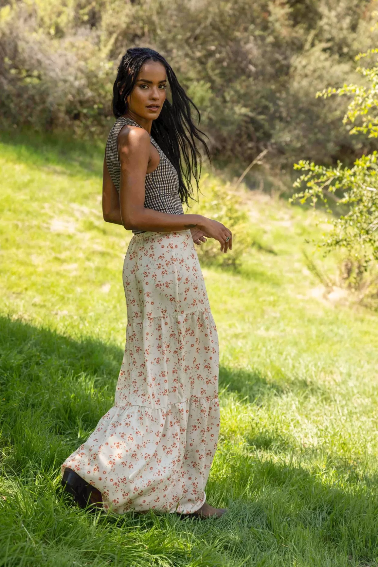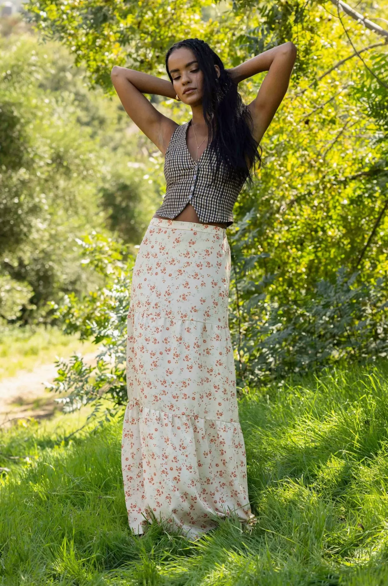 Tiered Maxi Skirt With Flowy SkirtSide Zipper Closure And Elastic Center Back WaistFabric: 100% PolyesterMachine Wash Co…