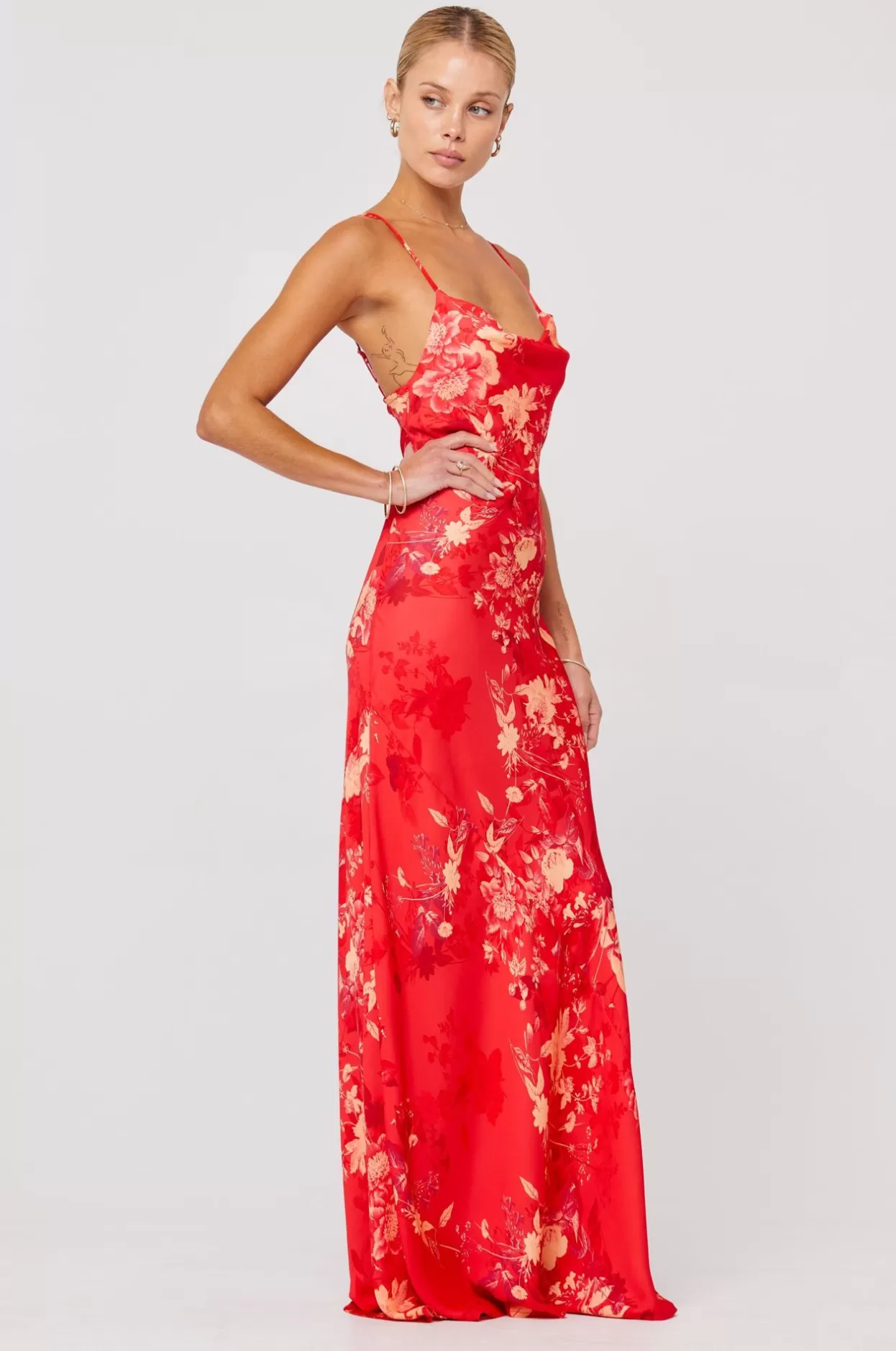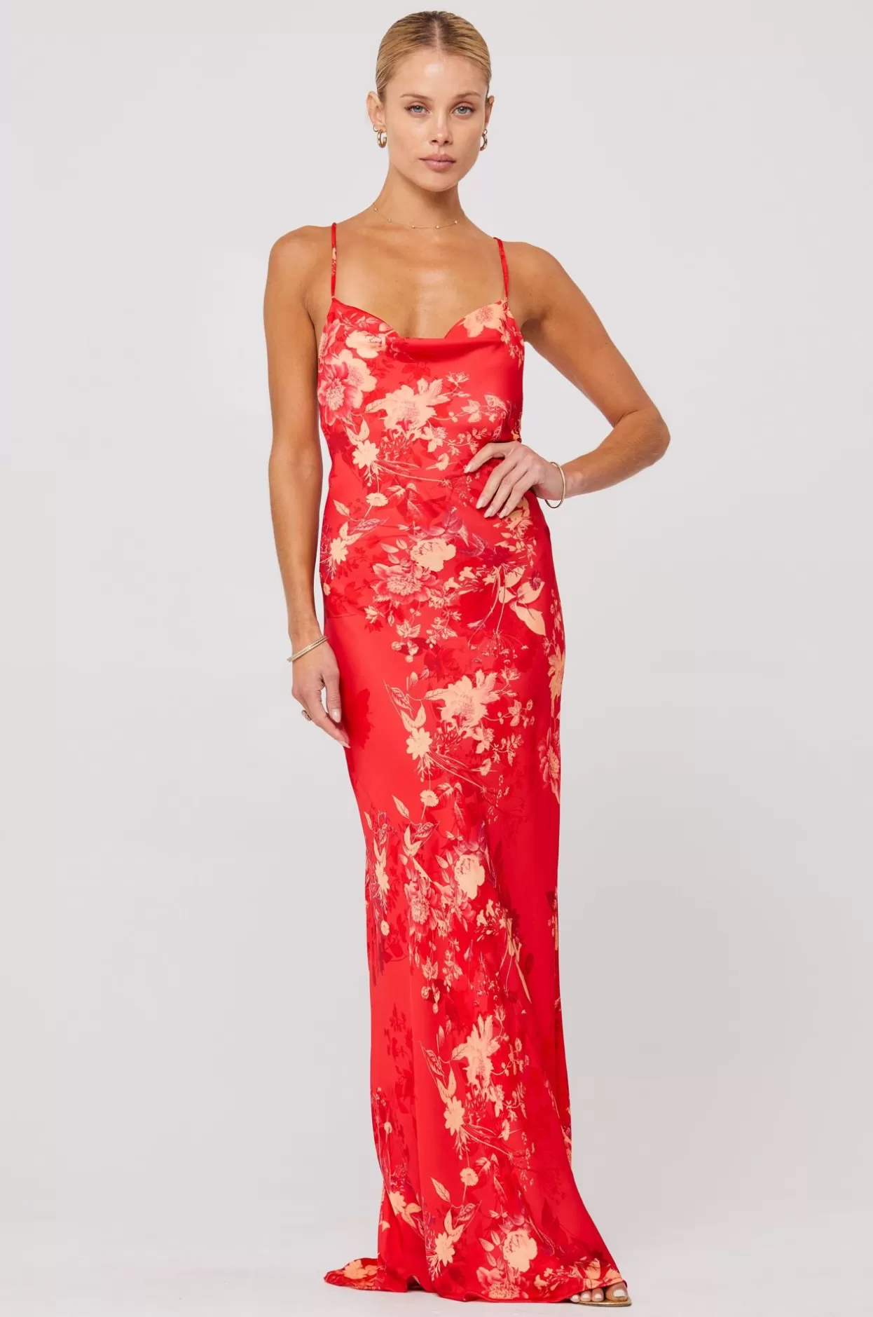 Full Length Slip Dress With Adjustable Spaghetti StrapsCowl Neckline Bra + Bump Friendly Fabric: 100% PolyesterModel A I…