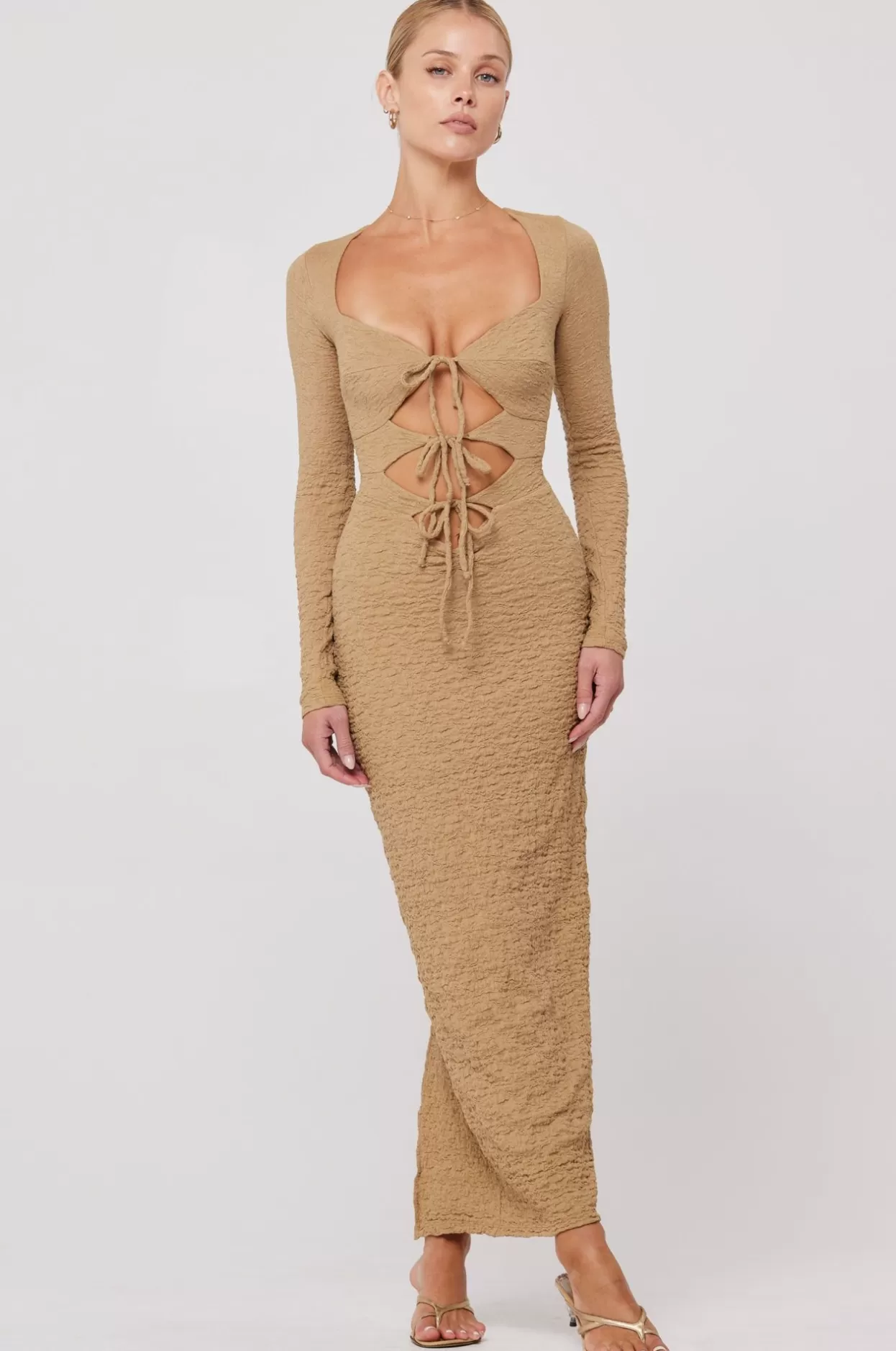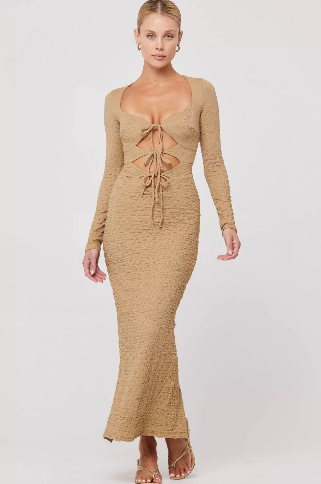 Adjustable Tie Front ClosureFitted Pencil Skirt Fit With Cutout DetailsDouble Lined In Our Bubble Knit FabricFabric: 96%…